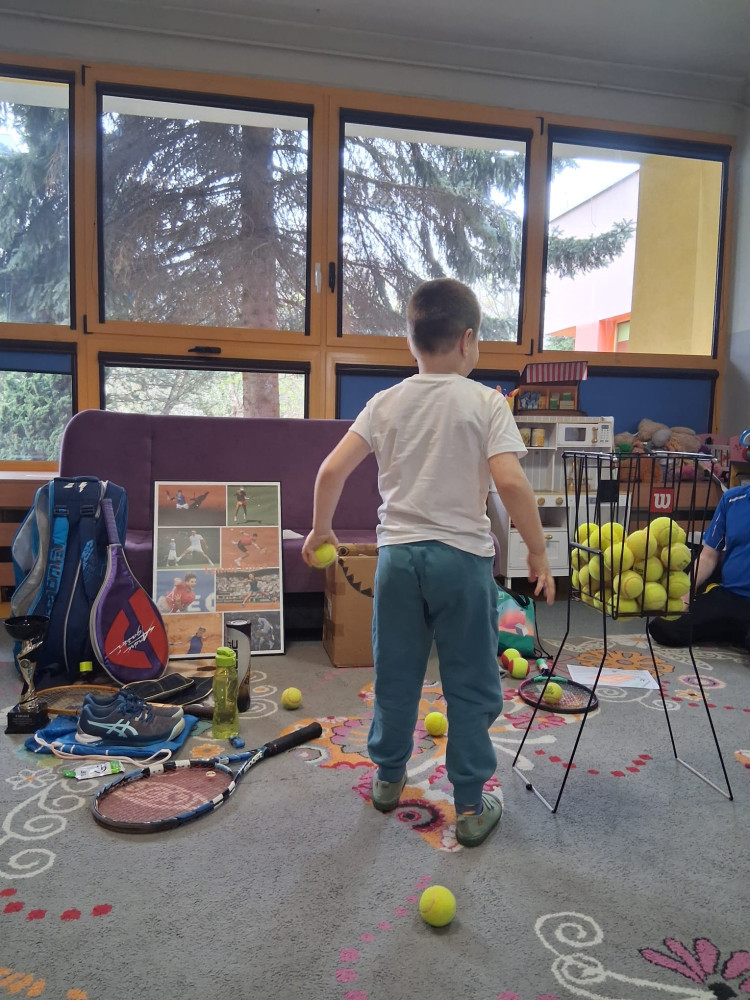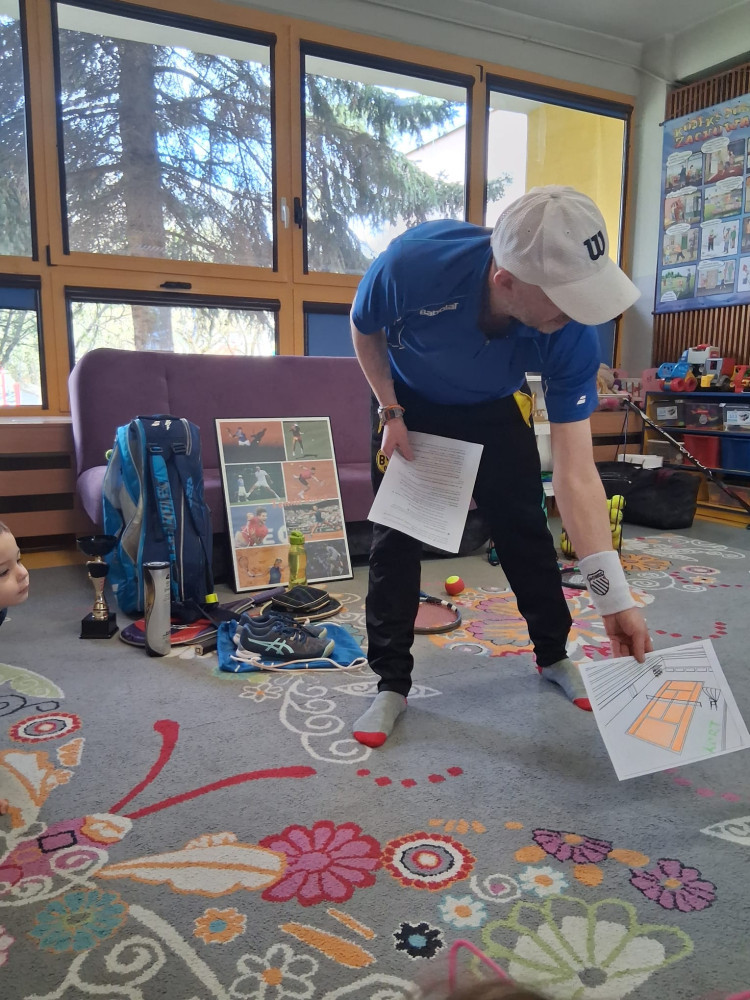 Dzieci miały okazję dowiedzieć się, na czym polegają poszczególne sporty, jak wygląda trening oraz jakie umiejętności są w nich najważniejsze. Tatusiowie przynieśli ze sobą różne akcesoria sportowe, które wzbudziły ogromne zainteresowanie – dzieci mogły zobaczyć z bliska rakietę tenisową, kij hokejowy, ochraniacze, piłeczki tenisowe, krążek hokejowy oraz inne sprzęty wykorzystywane podczas treningów.