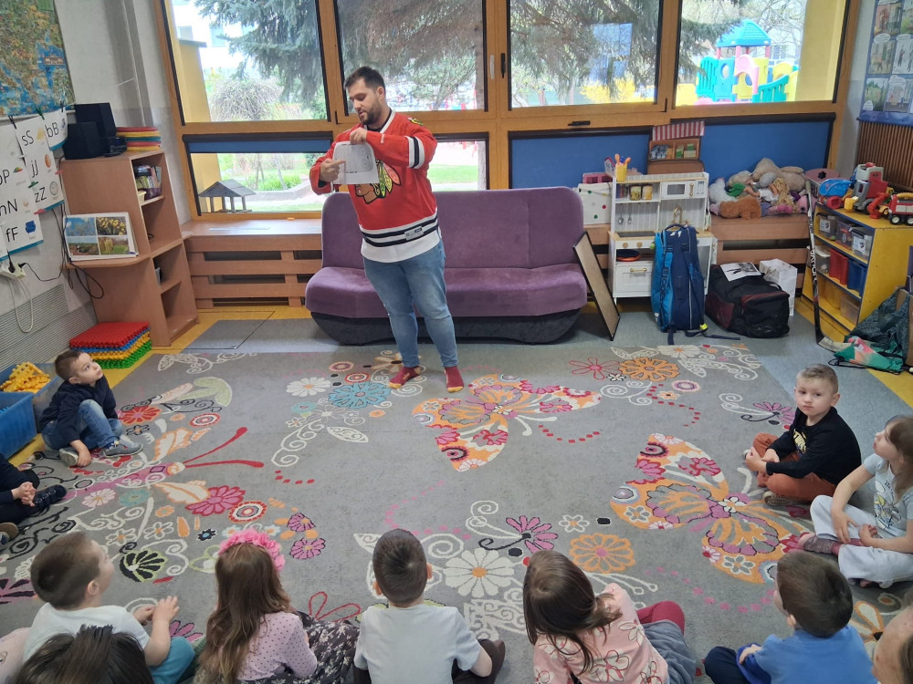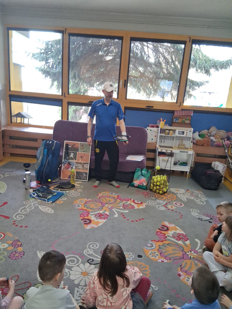 Dziś 3 grupę odwiedziło trzech tatusiów, którzy z ogromnym zaangażowaniem opowiedzieli dzieciom o swoich sportowych pasjach. Nasi goście przybliżyli najmłodszym takie dyscypliny jak hokej, tenis oraz crossfit, dzieląc się swoją wiedzą i doświadczeniem.